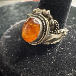 Sterling Silver Amber “Poison” Ring – Vintage 925 Hinged Ring Size 8 1/2$100Carlsbad, CA