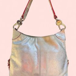 Y2K Dooney & Bourke Rose Gold Silver Metallic Italian Leather Logo Lobster Claw Shoulder Hobo Handbag Purse$33Lake Forest, CA