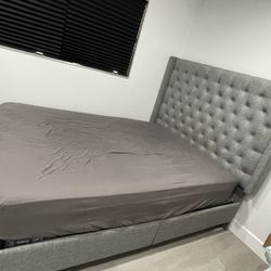 Queen Gray Chanelle Wingback Platform Bed w. Orhopedic Mattress Included $475Menifee, CA