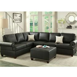 Bonded Leather Black Sectional With Ottoman Nailhead Trim Accent Pillows included Firm Price $980 FINANCING AVAILABLE $980Moreno Valley, CA