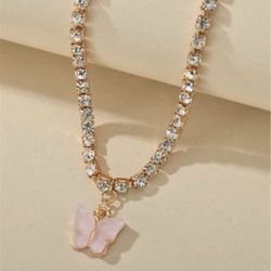 Women’s Girls Jewelry - Rhinestone Link Pink Butterfly Necklace $3Glmn Hot Spgs, CA
