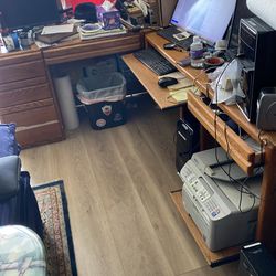L Shaped solid oak desk w moving Printer shelf$100Oceanside, CA