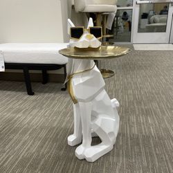 Modern White Resin Dog Sculpture Cute End Side Table With Metal Storage Tray Tissue Box$169Corona, CA