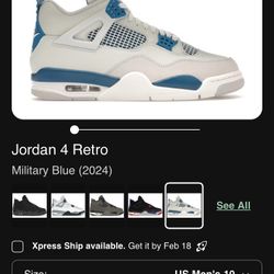Nike Jordan 4 Retro Military Blue Size 10 with box$170Aliso Viejo, CA