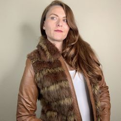 Boston Proper Genuine Leather Faux Fur Jacket New Never Worn Sz 8 Retail $365$50Corona, CA