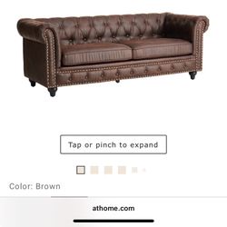 Chesterfield Brown Faux Leather Sofa,2Chairs And Ottoman $1,250Riverside, CA