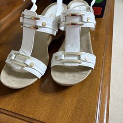 Never Worn Anne Klein White And Brass Leather Sandal Size 8.5$15Laguna Niguel, CA