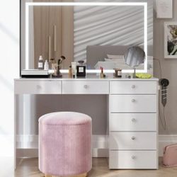 Makeup Vanity Desk Set with Mirror, LED Lights and Charging Station, White$150Corona, CA