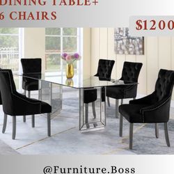 Mirrored Dining Table + 6 Black Velvet Chairs $1200$1,200Corona, CA