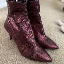 Free People Metallic Red/Burgundy Leather Heel Boots $50Carlsbad, CA
