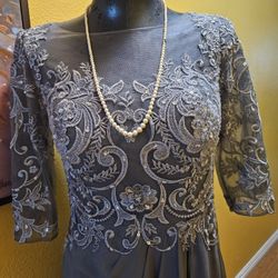 JJ's House Steel Gray Illusion Lace Chiffon Long Formal Dress Sz 10 ,12.$100Menifee, CA