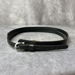Womens Black Cow Leather Split Double Strap Skinny Belt Silver-Tone Buckle Small$10Moreno Valley, CA