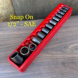 Snap On 13 pc 1/2" — 12-Point SAE Flank Drive Shallow Impact Socket Set (((( $220 )))) ❗️FULL SET ❗️$220Riverside, CA