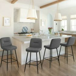 26 Inch Bar Stools Set of 4, Double-Layer Upholstered Counter Height Bar Stools for Kitchen Island, Faux Leather Barstools with Back and Footrest,$135Riverside, CA