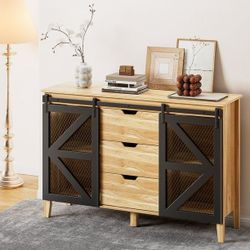 47" Wood Farmhouse Sideboard Buffet Cabinet with Sliding Barn Doors, Drawers, Storage, Fit TV Up To 48"$60Corona, CA