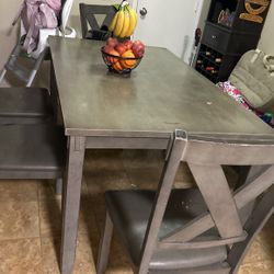 Gray Dinning Table With Bench And 4 Chairs.Table Had A Little Stains chairs And Bench Still In Good Condition $50San Diego, CA