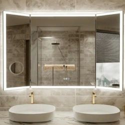 New 54 in. W x 36 in. H Tri-Fold Rectangular Framed Wall Mount LED Bathroom Vanity Mirror with 10X Magnification Mirror$295San Diego, CA