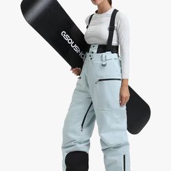 Women's Baggy Snowboard Pants Ski Bib Overalls Insulated Light Blue Size Small