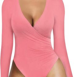 MangoPop pink long sleeve v-neck wrap bodysuit. Size Large$14San Diego, CA
