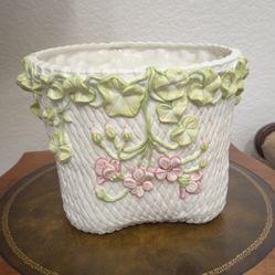 Vintage Italian White Porcelain Basket Weave Floral Cachepot/Planter$50San Diego, CA