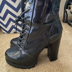Black glossy heeled lace up boots$15Chula Vista, CA