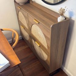 Vabches Rattan Shoe Storage Cabinet with Display Riser, Narrow Freestanding Shoe Organizer with Metal Legs, Entryway Rustic Oak Shoe Rack Cabinet$150San Diego, CA