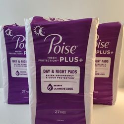 Poise Plus Incontinence Day & Night Pads for Women, #6+, Ultimate Long, 27 Pads. 2 Packs Available$15Lake Forest, CA
