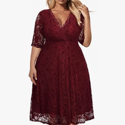 Women's Plus Size Wedding Guest Cocktail Party Semi Formal Lace Wrap V Neck Knee Length Dress$38Artesia, CA