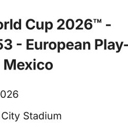 FIFA World Cup: Mexico Vs European TBD$2,300Bellflower, CA