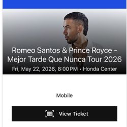 Ticket For Prince Royce And Romeo Santos Tour $350Santa Ana, CA