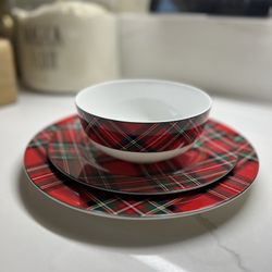 MKS Tartan Red 24PC Dinnerware Set, Service For 8$140Los Angeles, CA