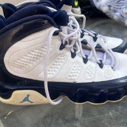 Used Air Jordan Retro 9 Sneaker GS UNC White Navy $25Bell Gardens, CA