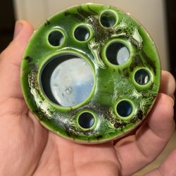 Vintage 2003 ASP Hobnail Aqua Glass Flower Vase with Wire Flower Frog Lid 3.5 “ High$12Rowland Heights, CA