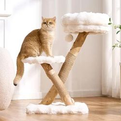 "Cat tree 33 inch natural wood cat tree with super soft plush cat bed, NEW