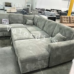 ‼️on Sale $439 No Tax U Shape Sectional Sofa Black, Grey, Dark Grey, Ivory Corduroy NEW$439Downey, CA