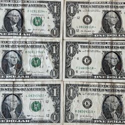 6 ONE DOLLAR BILL STAR NOTES!! LOOK!!$35Fullerton, CA