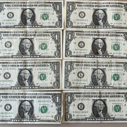 8 FANCY SERIAL NUMBER ONE DOLLAR BILL NOTES!! LOOK!!$39Fullerton, CA