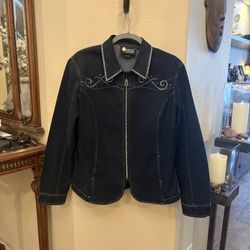 CHRISTINE ALEXANDER Women Dark Blue Rhinestone Western Denim Jacket Size Large$95Huntington Beach, CA