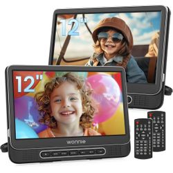 WONNIE 12" Dual Car DVD Players Portable DVD Players for Car Headrest Play a Same or Two Different Movies with 5-Hour Rechargeable Battery, Mounting B$135Lynwood, CA