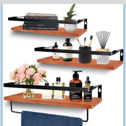 New set of three real wood floating shelves with towel bar$10Huntington Beach, CA