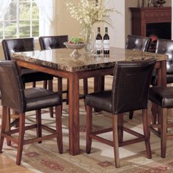 οΈ 5 pc Pascal black wood finish faux marble top dining table set grey fabric (Bench not included)β