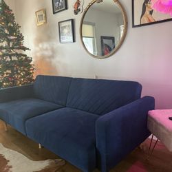 Blue Velvet Couch Foldable To Futon $80Long Beach, CA