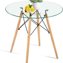 31.5 Inch Small Round Dining Table for 4 People Kitchen Home Modern Leisure Wood Legs Table Glass$69Compton, CA