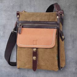 Canvas Messenger Bag with Dark One-Piece Leather Flap and Laptop Sleeve, Briefcase Style$25Torrance, CA