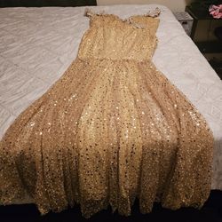 Gold sequin off the shoulder corset prom dress $70Corona, CA