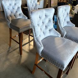 Height Bar Stools Set of 4, 27" Farmhouse Barstools with Button Back and Nailhead Trim, Velvet Bar Stools with Kitchen Island, Pub (Bright Gr$195Hacienda Heights, CA