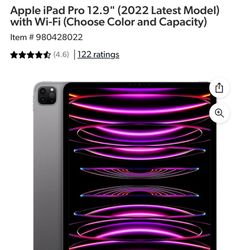 Apple iPad Pro 12.9 Inch 128 GB$600Garden Grove, CA