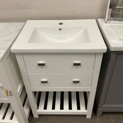 24” White Solid Wood Bathroom Vanity With Ceramic Top (V4)$250Jurupa Valley, CA
