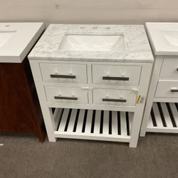30” White Solid Wood Bathroom Vanity With Marble Top (V5)$450Jurupa Valley, CA