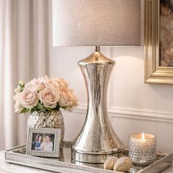 Silver Mercury Glass Style Table Lamp Glitter Drum Shade 25β Glam Vanity Decor$65Huntington Beach, CA